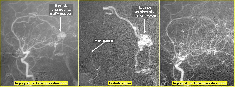 Beyindeki arteriovenöz malformasyonun embolizasyonla tedavisi.