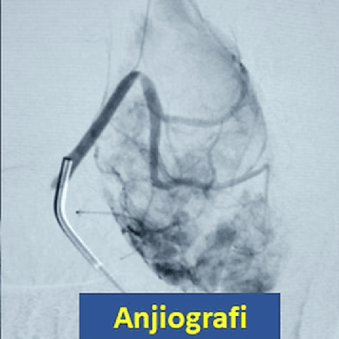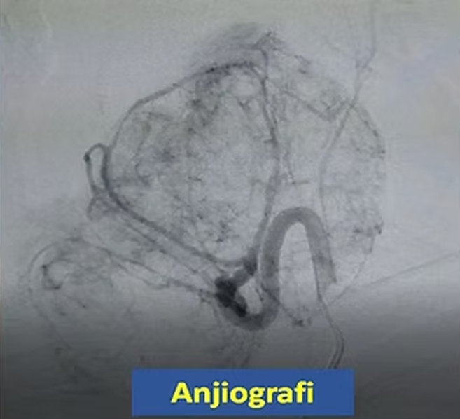 Tiroid bezi istmus bölgesinde 6 cm’lik benign solid nodülü olan 33 yaşında erkek hastaya anjiyografik embolizasyon uygulandı. Altı ay sonra, nodülün hacmi % 80 oranında azalmış ve boynun görünümü büyük ölçüde normale dönmüştür.
