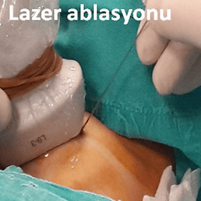 Tiroid sağ lobunda 38x24x27 mm çaplı toksik nodülü olan hastamızda nodüle perkütan lazer ablasyon uygulandı. Tedaviden bir yıl sonra hastada nodül hacmi %85 azalmış, tiroid hormon seviyeleri normale dönmüş ve hipertiroidi belirtileri ortadan kalkmıştır.