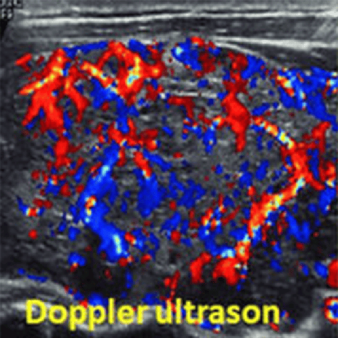 Bir Graves hastamızda, renkli Doppler ultrasonda damarlanma artışı izleniyor ve hastaya embolizasyon tedavisi uygulanıyor. İşlemden 6 ay sonra çekilen kontrol ultrasonunda kitlenin küçüldüğü izleniyor. Hastanın tüm hipertiroidi yakınmaları geçmiş ve T3, T4, TSH hormon seviyeleri tamamen normalleşmiştir. Hasta halen ilaçsız olarak takip edilmektedir.