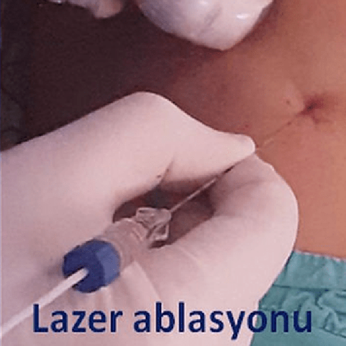 Tiroid sağ lobunda 51x30x37 mm boyutlarında solid nodülü olan hastamızda ultrason rehberliğinde perkütan lazer ablasyonu uygulandı. Bir yıl sonra, tedavi edilen nodül hacimsel olarak % 80 oranında küçülmüş ve boyun görünümü normale dönmüştür.